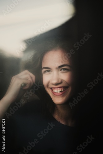 young, woman, window, spontaneous, smiling, pretty, portrait, cute, beautiful, caucasian, white