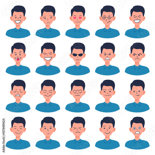Portraits of man. Boy Avatar. Male emotions.