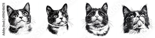 Portraits of Turkish Van cats pencil drawing style, showcasing their unique features and