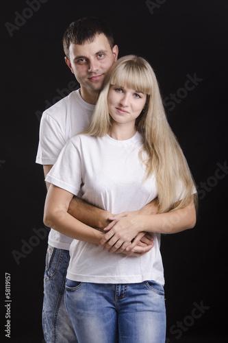 Портрет молодой пары на черном фоне
