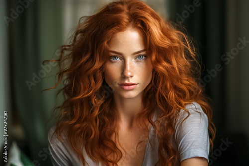 woman, young, pretty, redheaded, portrait, smile, female, skin, freckle, beauty, natural, red, hair, red hair, face, luminescent, feminine, appearance, sensual, sensuality, eye, soft, feature, elegant, countenance, redhead, lifestyle, happy, ai