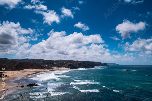 atlantic, bay, beach, blue skies, cliff, cloud, day, landscape, nature, ocean, sand, sea, seascape, sky, summer, water, wave