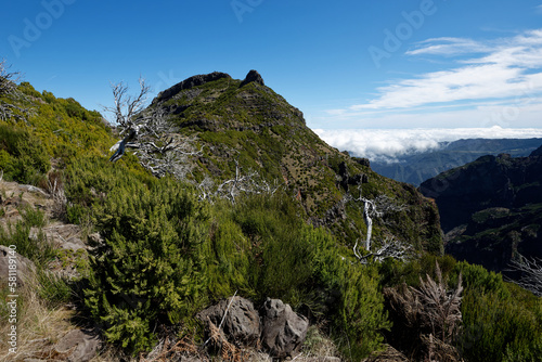 madeira, portugal, walk, hike, mountain, peak, way, mountain, cloud, hiker, forest, heaven, blue, white