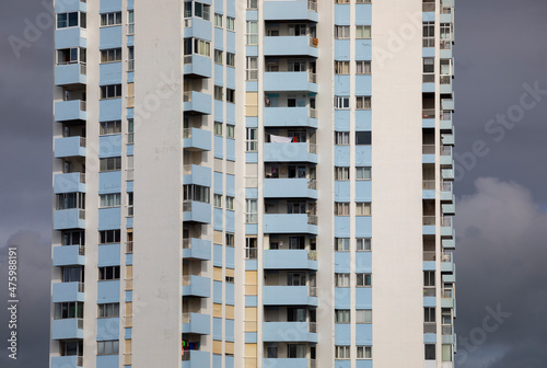 Portugal, Azores, Ponta Delgada, Rows of identical apartment building balconies