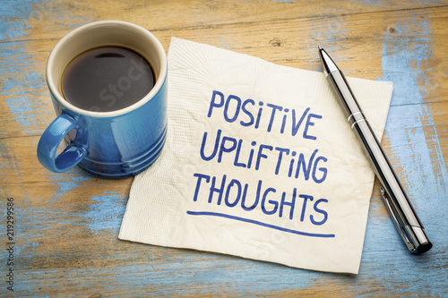 attitude, inspiration, positive, thought, uplifting, blue, hot drink, cup, espresso, handwriting, happiness, message, napkin, note, optimism, pen, positivity, reminder, success, text, thinking, wood