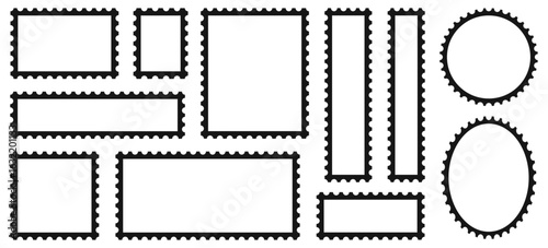 Postage stamp frame templates. Collection of different postage stamp borders in rectangular, square, circular and oval shapes