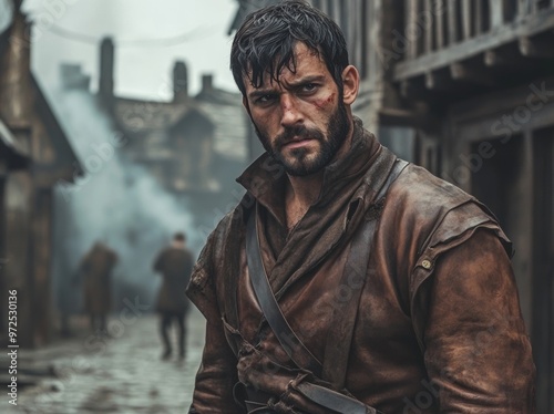 Post-Apocalyptic Wasteland Warriors in armor suits, generated by stock