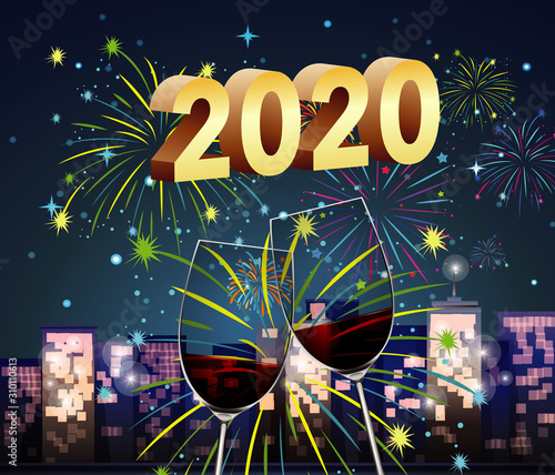 background, template, card, poster, signs, celebration, party, festival, decoration, holiday, day, occasion, new year, 2020, night, bright, fireworks, city, town, wine, drink, blank, empty, design, signage, signs, frame, celebrate, vacation, travel, sky, dark, light, urban, illustration, vector, cartoon, graphic, drawing, clip art, clip art, image, picture, clip art, art, artistic, clip