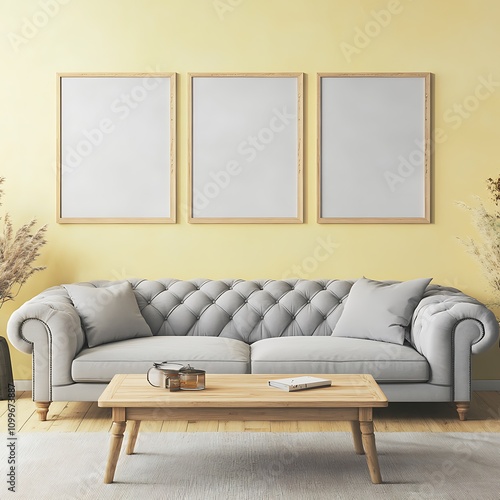 Poster frame in room interior. Mock up concept. 3d Illustration.