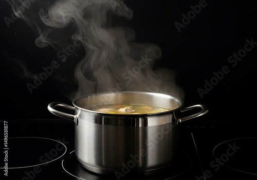 soup, cook, steaming, delicious, dark, kitchen, cooking, hot, steam, stainless steel, pot, broth, food, chicken, vegetable, meal, dinner, cookware, stove, induction, heat, ingredient, preparation, plate, appetising, dish, bowl, alimentary, homemade, culinary, cookery, lunch, black background, domestic, studio shot, indoor, everyday, eatery, nourishment, comfort food, serving, eating