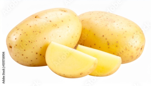 Potato and slice isolated on transparent white background