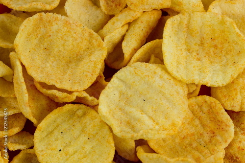 Potato chips background. Food texture