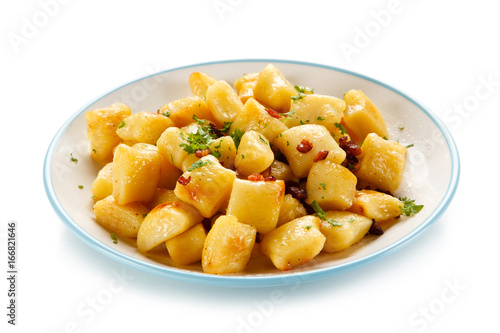 Potato noodles - dumplings on white background