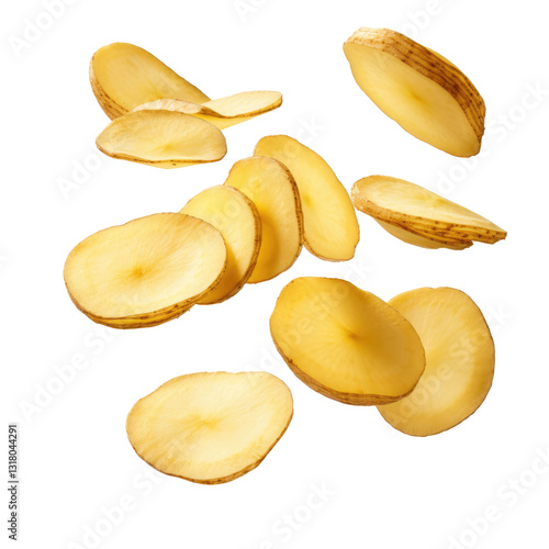 potato slices falling on transparent background