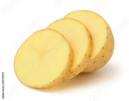 potato, sliced, isolated, clipping path, fresh, food, yellow, vegetable, closeup, cook, nature, raw, natural, snack, plant, piece, cut, cooking, eating, root, ingredient, tuber, health, carbohydrate, brown