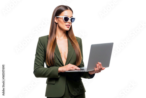 laptop, business, woman, computer, businesswoman, office, notebook, working, work, cyberspace, goggles, technology, people, person, sitting, secretary, student, desk, professional, manager, smiling, men at work, beauty, success, job