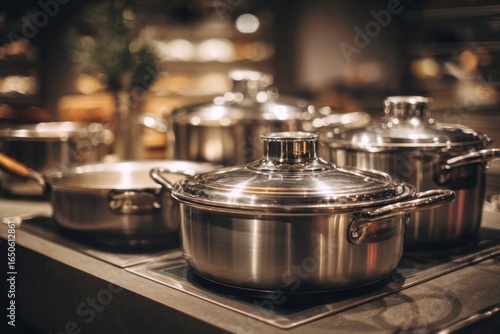 Pots and pans made of stainless steel , Generative AI