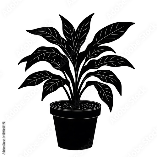 Potted plant, foliage, leafy houseplant, terracotta pot, indoor gardening, nature illustration.
