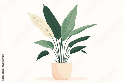 plant, potted, leaf, green, beige, home, decor, indoor, houseplant, foliage, nature, botanical, gardening, vegetation, organic, growth, spring, summer, life, wellness, relaxation, calm, peace, serenity, calmness, minimalist, simple, elegant, stylish, modern, contemporary, aesthetic, design, interior, room, office, space, background, texture, pattern, illustration, graphic, artwork
