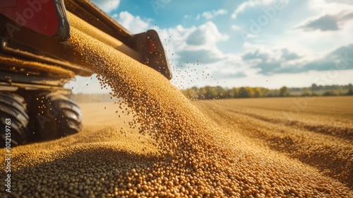 soybean, grain, pouring, tractor, trailer, harvest, farming, crop, machinery, truck, transport, unloading, produce, combine harvester, farmland, seed, dirtied, growth, generating, seasonal, cultivation, agronomy, environmentally friendly, logistic, industry, harvested, economy, harvest festival, nutrient