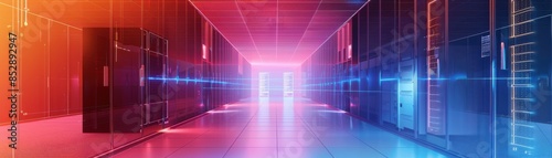 Power flow diagram showing energy management in a data center, operational efficiency theme, front view, illustrating power flow and backup, advanced tone, analogous color scheme
