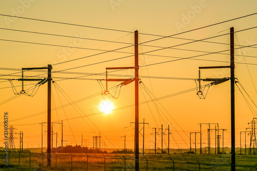 cable, electricity, energy, engineering, industry, power, steel, technology, wire, danger, electric, electrical, grid, high, industrial, line, metal, orange, sky, structure, sun, sunset, supply, tower, transmission, voltage