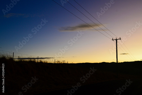 sunset, silhouette, sky, night, cable, electricity, light, wire, field, landscape, dusk, evening, atmosphere, cloud, powerline, afterglow, utility pole, outdoors, sunlight, nature, backlit, energy, horizon, road, weather, sunset, sundown, travel, sky, nsw, new south wales, australia, power, no people, country, rural