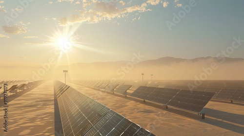 Power plant using renewable solar energy with sun. AI generated illustration