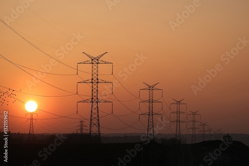 electricity, sun, sunset, transmission, power, renewable energy, cable, electric, distribution, line, energy, amazing, beautiful, colourful, crimea, electrical, engineering, europa, high, industry, metal, orange, scenery, sky, steel, structure, sunrise, technology, sun, tower