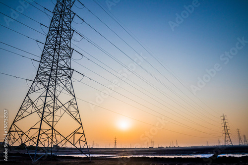 horizon, modern, smart, futuristic, sunset, sunrise, volt, substation, manufacturing, architecture, climate, global warming, power plant, powerful, transformer, cloud, danger, pole, powerline, connection, future, construction, equipment, network, grid, industrial, distribution, station, electrical, pylon, engineering, metal, steel, environment, electricity, electric, line, transmission, structure, supply, wire, tower, technology, high, industry, cable, voltage, energy, power, sky