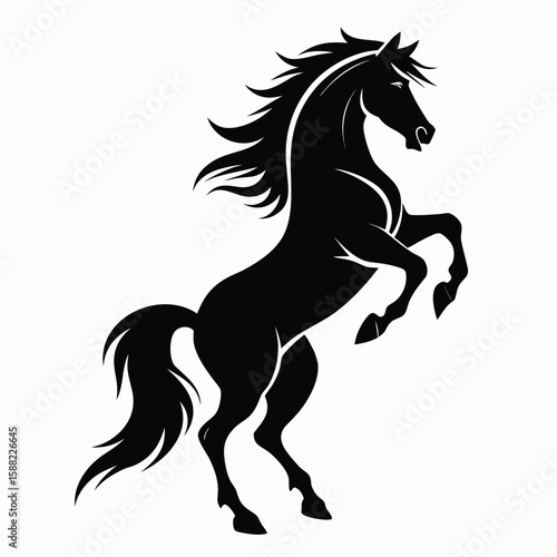 horse, silhouette, black, rearing, powerful, animal, equine, wildlife, majestic, strength, freedom, grace, movement, dynamic, art, illustration, design, graphic, vector, icon, symbol, energy, spirit, wild, galloping, mane, tail, hoof