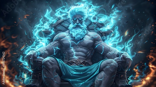 god, king, throne, power, blue, flames, fire, majestic, ancient, mythical, fantasy, digital artwork, illustration, artwork, fantasy art, mythology, powerful, strong, dominant, epic, royals, majesty, fiery, glowing