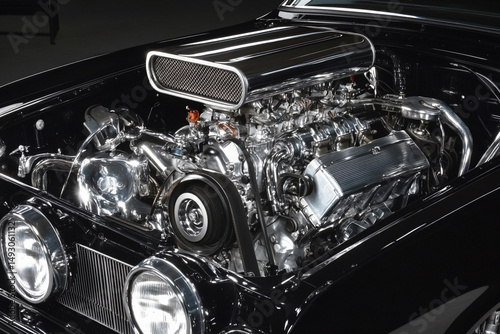 chrome, performance, automotive, closeup, power, mechanic, engineering, vehicle, tuning, horsepower, customization, steel, speed, modification, motor, machinery, racing, alloy, craftsmanship, machine-building, high performance, generative, ai