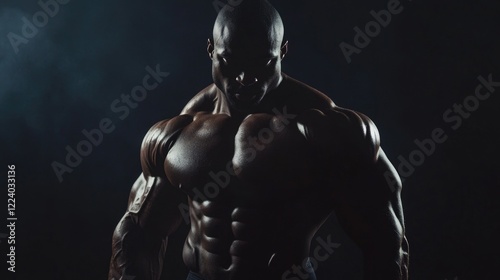 bodybuilder, muscular, strength, definition, athletic, physique, bronze, skin, powerful, showcase, dark, smoky, background, fitness, pose, gym, health, exercise, champion, training, male, bicep, triceps, shoulder, leg, abs, intensity, athleticism, determination, power, sharpened, sport, competition, flexing, strong, toned, wellness, sculpted, bravery, energy, action, dynamic, vitality, highlight