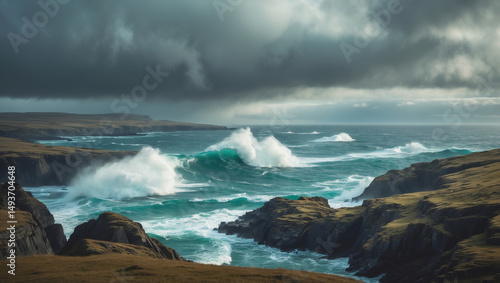 iceland, ocean, wave, cliff, coast, dramatic, sky, cloud, turquoise, landscape, seascape, nature, power, rugged, rocky, scenic, stormy, weather, wind, water, sea, foam, spray, wild, environment, travel, destination, tour tourism, adventure, exploration, icelandic, scenery, beauty, picturesque, breathtaking, awe, inspiring, moody, dark, light, shadow, horizon
