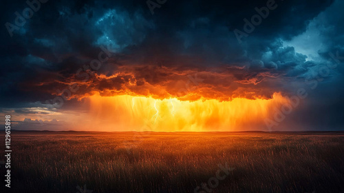 powerful rainstorm with thunderclouds symbolizing chaos, unpredictability, and nature's raw force, evoking feelings of turmoil and intensity in the dramatic sky
