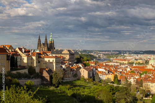 prague, czechia, europa, city, city landscape, landmark, architecture, castle, historic, tour tourism, travel, urban, view, panorama, rooftop, red roof, sky, cloud, spring, summer, daylight, capital, building