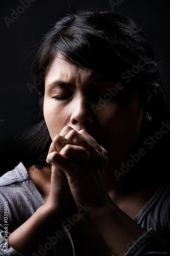 religious, praying, despair, silence, 20s, asian, adult, closeup, contrast, dark, expression, face, faith, female, head, hope, low key, silent, wish, woman, young