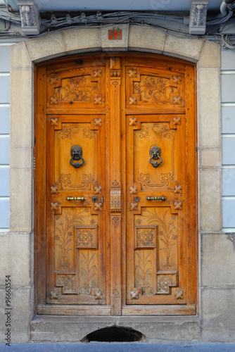 city, wooden door, rich, ornate, floral, pattern, huesca, aragón