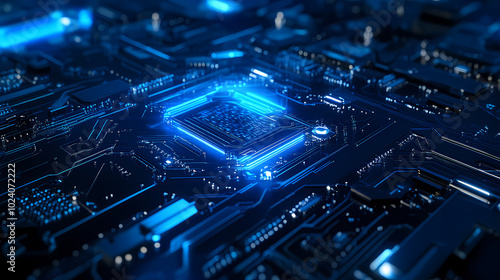 precise, high technology, machine, intricate, design, metal, surface, emitting, bright, blue, light, within, modern, engraving, illustration