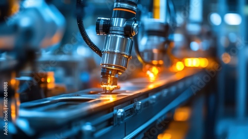 Precision casting process in a high-tech facility, glowing metal and advanced robotic systems