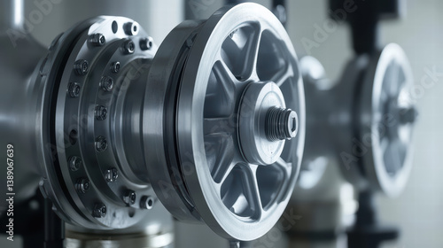 Precision Engineering: A captivating shot of intricate, metallic industrial components, showcasing the beauty of precision, technological advancement, and the art of sophisticated manufacturing.