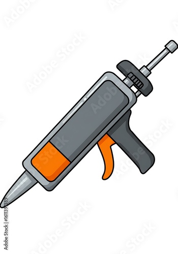 caulk, gun, adhesive, applicator, tool, construction, repair, orange, grey, plastic, metal, trigger, handle, nozzle, cartridge, dispenser, industrial, bricolage, home, improvement, project, building, material, bonding, fix, mechanism