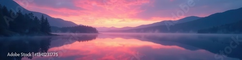 Pre-dawn light paints the Irish lake with soft hues , Irish lake, daybreak, tranquil