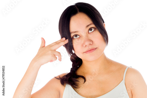 despair, hand, head shot, stress, suicide, adult, annoyed, asian, asian ethnicity, baby, depressed, expecting, female, finger, finger, gesture, gun, isolated, isolated on white, one person, people, portrait, pregnant, signs, woman