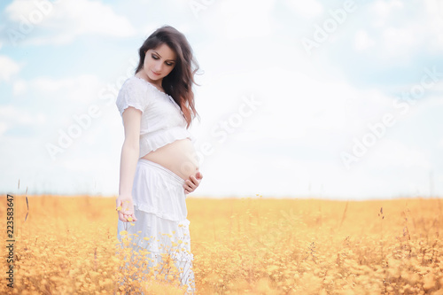 Pregnant woman in nature for a walk in the autumn