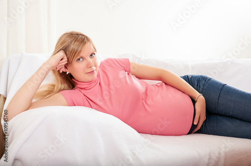 Pregnant woman relaxing at home on the couch