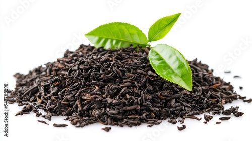 Premium Black Tea Leaves blended with Green Leaves. Tea Brewing Pile isolated on white background