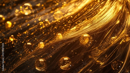 premium, hair, care, visual, concept, illuminated, serum, droplet, textured, follicle, strand, aethereal, gold, scientific, macro, photo, organic, abstract, composition, deep, contrast
