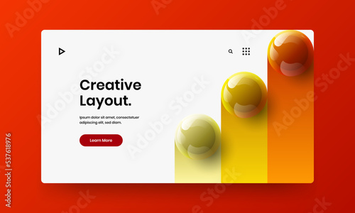 Premium poster design vector template. Simple 3D spheres company identity concept.